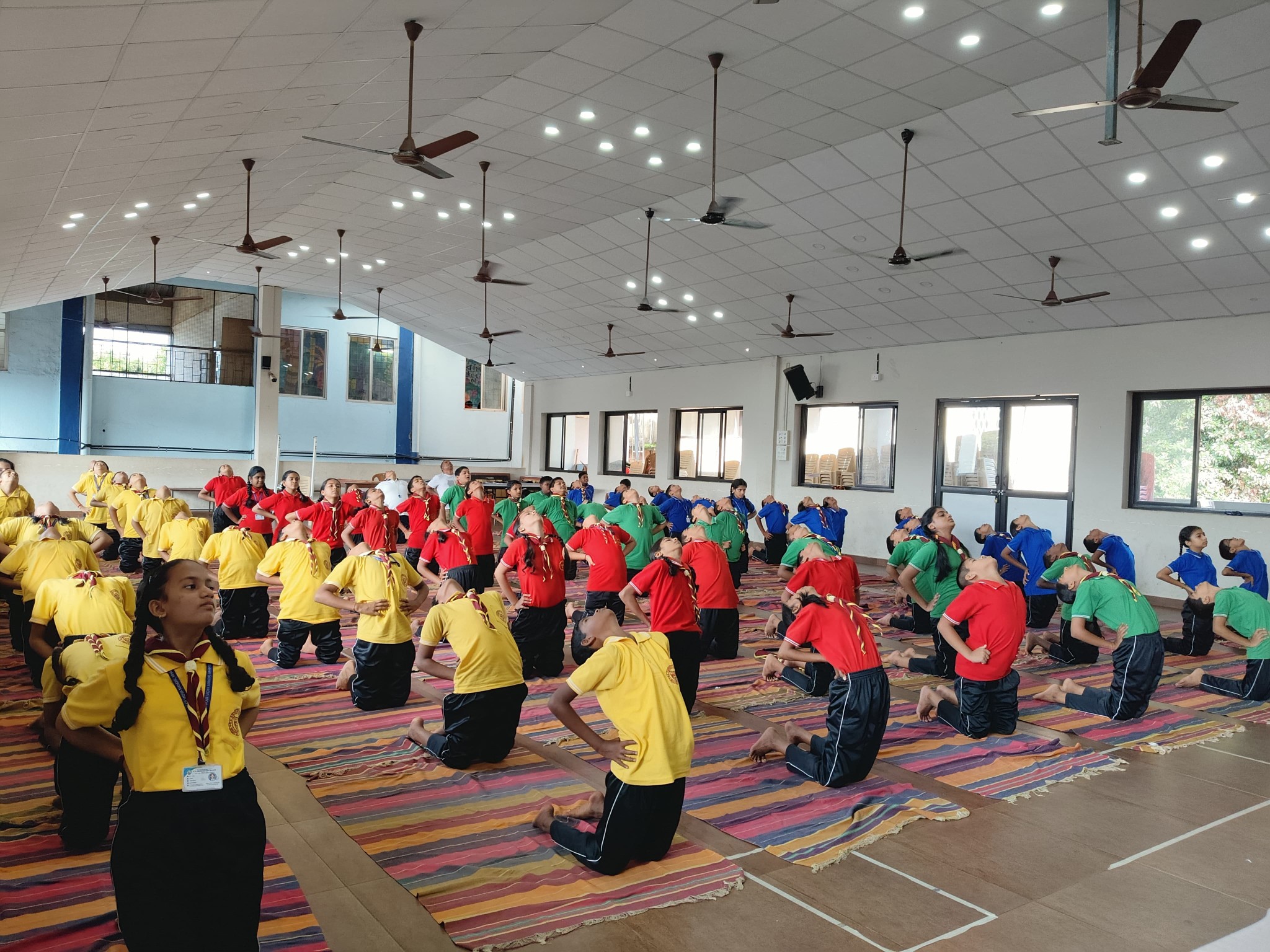 Under the expert guidance of Mrs. Rakhi Morudkar, students enthusiastically performed various yoga asanas, relaxation exercises, breathing techniques (pranayama), and meditation.