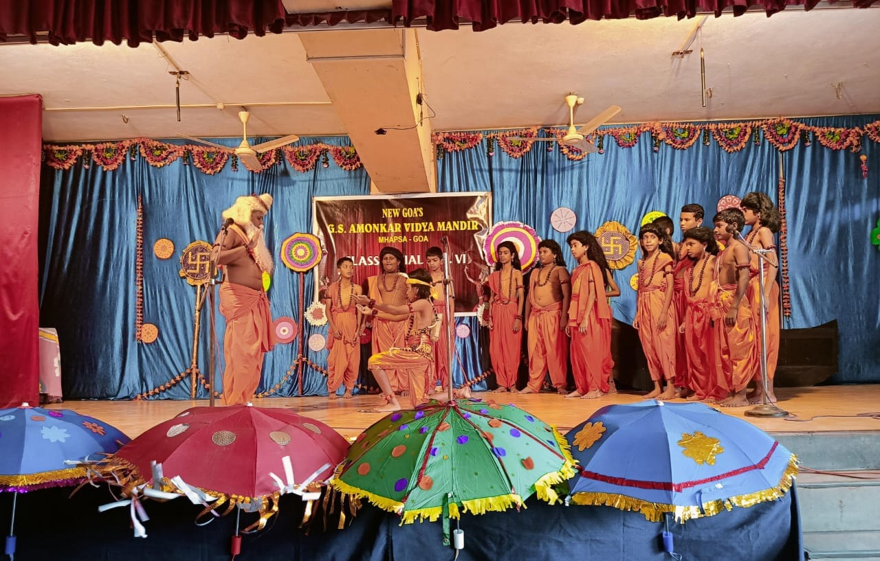 The class social of standard VI of New Goa’s G.S.Amonkar Vidya Mandir Mapusa was held on 13 January 2024 in the school hall. The Chief guest was Mr. Vasudev Divkar, ex student of the school. The chief guest was welcomed with a potted plant. The dignitaries present on the dais were the Headmistress Mrs Pooja Dalvi, Assistant Head mistress Mrs Zena Viegas, the chairman of the managing committee advocate Mr. Sanjay Usgaokar and school manager Mr. Mohan Kaul. The audience was welcomed by Miss Chelsea Oliveira. The meritorious students were given prizes at the hands of the chief guest. The chief guest in his address appreciated and encouraged the students. Speeches were also given by Adv. Sanjay Usgaokar and teacher, Mr. Alok Barve. On this occasion, a cultural programme that included skits, dances and music was presented by the students. Vote of thanks was proposed by Miss. Lavanya Raul. The programme was compered by Miss Shriya Barve, Mast. Omkar Prabhugaokar and Miss. Rajvi Naik.