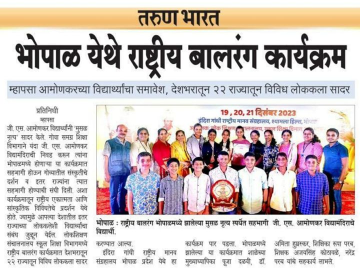 G.S.Amonkar Vidya Mandir exhibited Goan culture at National Balrang programme 2023 in Bhopal.