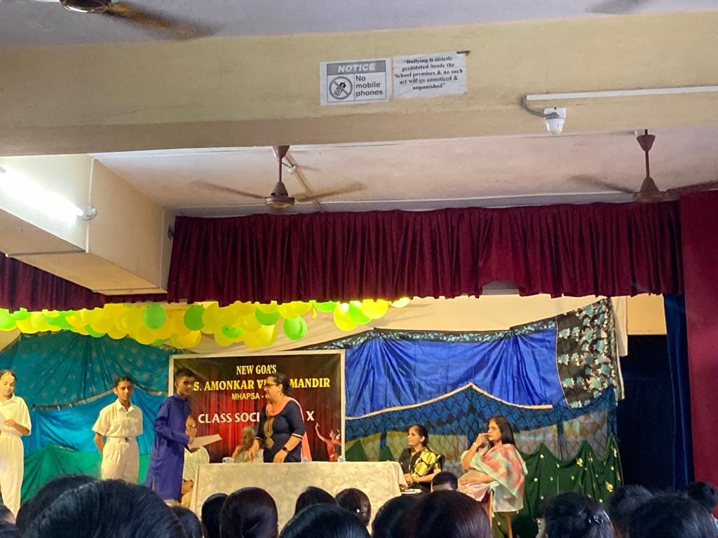 The class social of class X was held on 24th June 2023. The chief guest on the occasion was Dr. Pooja Wagle. The students of class X presented a cultural programme of skits, songs, mime and dance. The chief guest shared words of wisdom. The chairman of the school managing committee spoke on the occasion. Prizes were distributed for proficiency in different subjects. Mrs. Amita Humraskar shared her thoughts on the occasion. Miss Sonika Naik welcomed the gathering and Miss Avani Telang gave the vote of thanks. The entire programme was compered by Miss Shambhavi Soman assisted by Jagruthi Walke , Pranav Rakate and Anuj Dicholkar.