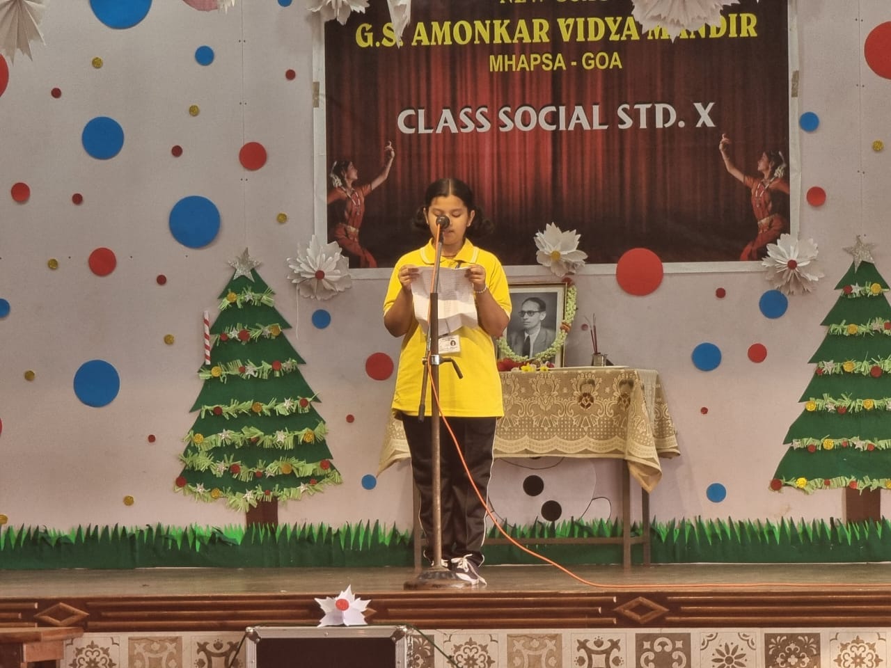 Founder`s Day was celebrated in New Goa`s G. S. Amonkar Vidya Mandir, Mapusa by the students of class V. Headmistress of the school Mrs. Pooja Dalvi and Assistant Headmistress Mrs. Zena Viegas lightened the traditional lamp. The students presented a welcome dance and a poem. Speeches were delivered by the teacher Mr. Sunil Bandekar and a student Mast. Aditya Mandrekar. The programme was compered by Mast. Sarthak Mandrekar.